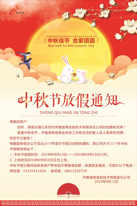 中秋節(jié)假日期間給新老客戶帶來(lái)的不便敬請(qǐng)諒解。節(jié)假日時(shí)間我司將繼續(xù)提供服務(wù),安排專(zhuān)人值班。
